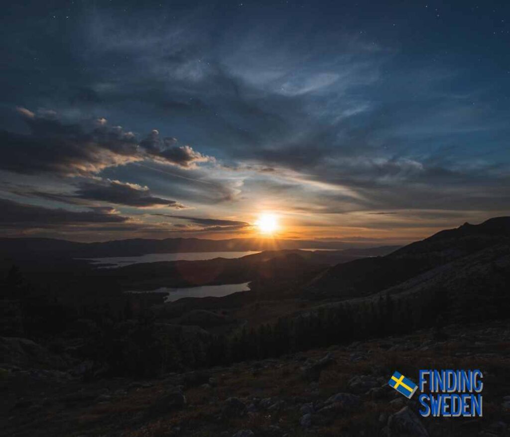 In the weeks around the summer solstice the sun barely dips below the horizon in northern Sweden. In places like Kiruna and Abisko the sky may never get fully dark for weeks on end. This is the midnight sun.